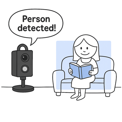 Our camera prototype and bring-your-own Raspberry Pi based cameras can be configured to send notifications when they see a person, a pet, or a vehicle. They do so by performing AI on the device itself. In contrast, other camera solutions send your videos to their servers to perform AI on them.