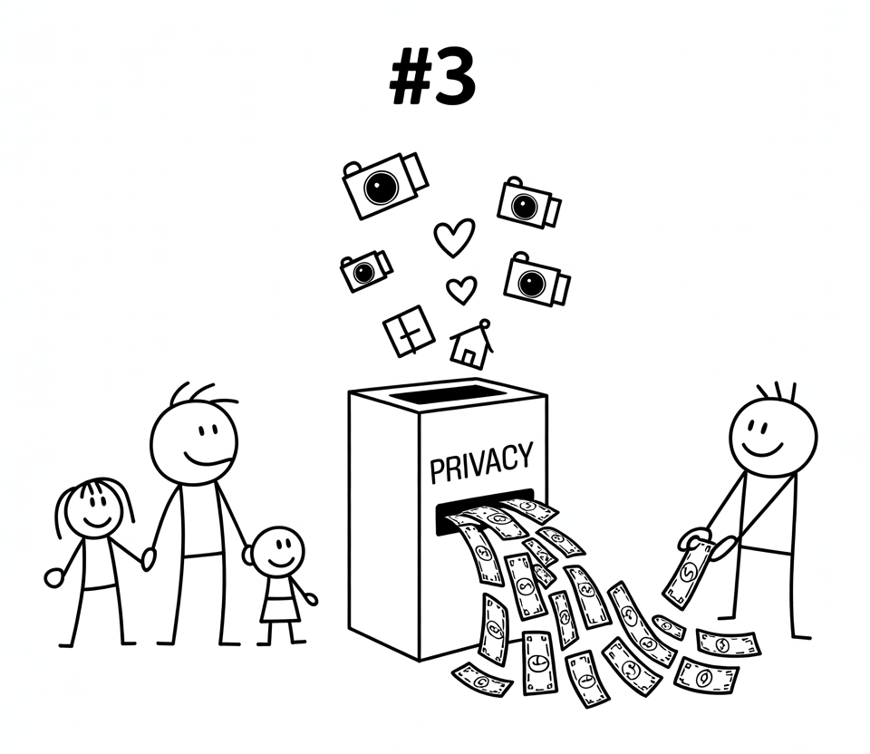 On most mainstream cameras, your footage isn’t encrypted once it leaves your home. That means the companies behind them can freely access it. Employees can watch your private moments for no reason. Recordings can be sold to advertisers or quietly fed into AI training systems. With no real protection, your family’s most personal moments become just another product to exploit.
